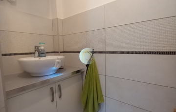 A közösségi terekben egységes járólapok találhatóak, a hálókban pedig laminált parketta. A tetőtérben is megőrizték az eredeti fagerendás födémet, ami egyedi karaktert ad a helyiségnek.