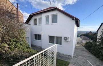 Pécs Tettye sétány közelében, csendes, közkedvelt utcában, kiváló adottságú családi ház eladó!Pécs egyik legkedveltebb részén, a Tettye sétánytól mindössze 5-6 perc sétára, nyugodt, rendezett utcában eladóvá vált egy 1992-ben teljes körűen újjáépített, kiváló adottságokkal rendelkező, belső kétszintes családi ház.Az ingatlan 813 m²-es telken helyezkedik el, amely ideális méretű, jól használható kertet biztosít.Főbb jellemzők5 cm homlokzati szigetelés15 cm tetőszigetelésMinőségi BRAMAC tetőMűanyag nyílászárók3 db nagy teljesítményű hűtő-fűtő klíma (2 a földszinten, 1 az emeleten)Junkers vegyestüzelésű kazánCirkó kazánHáromfázisú áramVezetékes víz a melléképületben isBelső elrendezésAlsó szint:Tágas, világos konyhaétkezőNagyméretű nappaliFürdőszobaKülön WCElőszobaFelső szint:4 külön nyíló hálószobaEgy központi, tágas nappali térből nyílvaKülön fürdőszobaKülön WCAlagsor / szuterinSzaunaZuhanyzóKülön WCGépészeti helyiségMelléképület extra lehetőségekkelA telken található egy fűthető melléképület, amely:külön lakrésszé alakítható (kétgenerációs megoldás), irodának / üzlethelyiségnek is alkalmas, vállalkozási célra kiváló.A háromfázisú áram és a víz rendelkezésre állása miatt a lehetőségek széles skálája adott.ParkolásAz utcafronton található garázs akár két autó számára is kényelmes beállást biztosít.ElhelyezkedésTettye sétány 5-6 perc gyalogCsendes, rendezett, értékálló környékKiváló infrastruktúraPanorámás elhelyezkedés, amely minden évszakban különleges hangulatot biztosítEz az ingatlan ideális választás lehet:nagycsaládosoknak, kétgenerációs együttélésre, vállalkozóknak, befektetésre.